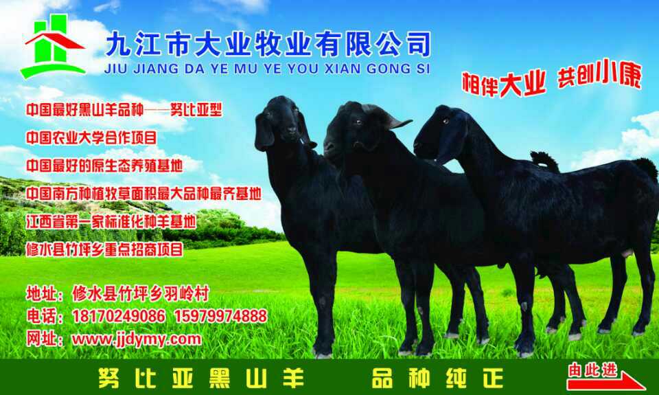 九江市大業牧業有限公司是努比亞黑山羊,集養殖、育種、科研、推廣服務于一體的大型正規化養殖供應地,是江西省畜牧扶貧特種養殖重點推廣項目。本牧業本著“至誠至信,合作共贏”的理念,始終堅持以誠為本,以信為道,以優為勝的服務態度,始終堅持對客戶負責,讓客戶滿意的原則,每年為中國中部地區繁育大批量的特種努比亞黑山羊,成為業內的佼佼者。