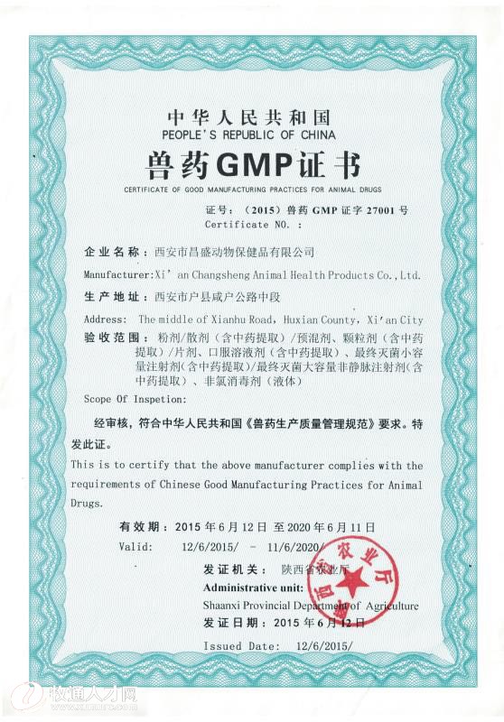 西安市昌盛動物保健品有限公司是一家專業從事獸藥研發、生產、銷售、推廣、服務為一體的高新技術企業,注冊資金8000萬。公司坐落于美麗的十三朝古都-西安,是西北地區最大的獸藥生產企業,是目前國內主要的禽藥生產企業之一。公司依托新西蘭梅西大學、中國藥科大學、中國農業大學、羅氏中國、西北農林科技大學、華南農業大學等專家、教授的科研成果,結合國內養殖現狀及發展方向,疫病流行趨勢,共同推出適合目前養殖需求,更具時效性的最新動物保健產品。2005年以高分通過農業部GMP的認證,2010年和2015年以陜西省最高分順利通過農業部GMP的復驗,現擁有目前國內最先進的預混劑、顆粒劑、口服液、中藥萃取、注射液、消毒劑等十條生產線。強大的技術后盾和雄厚的經濟實力吸收并培養了一批能征善戰的營銷團隊和售后服務團隊,公司現有營銷人員200多名,售后服務人員100多人,大專以上學歷占98%以上,產品暢銷河南、山東、東北、河北、江蘇、湖北、安徽、陜西、山西、新疆等二十多個省。公司成立至今,堅持“以質量求生存,“樹德勝品牌,建百年老店”是每一位德勝人共同的目標愿景,德勝的飛躍發展,離不開社會各界的大力支持,德勝人期待您的加盟!德勝使命詮釋:1、為養殖業的健康發展保駕護航,為養殖業的效益提升不懈努力! 2、公司通過提高科研創新、推廣科學養殖理念、加強產品質量管控、健全營銷體系、強化服務意識,讓養殖業無后顧之憂!3、帶領客戶贏利,帶動員工發展,促進社會和諧!德勝宣言:1、對客戶:聚焦客戶需求,提供有競爭力的解決方案和服務,持續為客戶創造最大價值!2、對同仁:給同仁搭建一個展示才華、快速成長和實現自我價值的舞臺,讓同仁過上幸福、體面和榮耀的生活!3、對股東:高度負責、長效回報!4、對社會:為人類能享受綠色食品、保持身心健康而努力!德勝愿景:1、有養殖的地方就有昌盛產品和服務!2、為國家創建一個具有國際競爭力的卓越企業,為民族創建一個具有百年發展力的世界品牌!務! 昌盛藥業集團過去、現在和未來一直秉承并努力實踐一個使命:讓養殖更輕松!為此我們過去、現在和未來的科技研發也一直以使命為目標進行堅持不懈的工作。小勝憑智、大勝靠德,靠德騰飛!