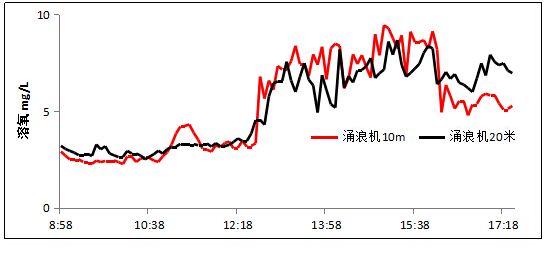 綜上所述:葉輪機和涌浪機都可以消除表層和底層溶氧差,達到攪水的目的;而在表層溶氧充足的條件下,利用涌浪機攪動水體,更節約電力成本。