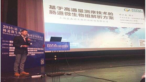 派森諾生物作為國內運用高通量測序技術解析微生物組的領導者,有幸成為大會的主要贊助商。本公司宏基因組產品線的薛正晟博士作了題為“基于高通量測序技術的腸道微生物組解析方案”的演講,從關注菌群結構和多樣性的靶向測序、關注菌群功能活性及其與人體間相互協作關系的宏基因組De novo鳥槍法測序、以及關注菌群代謝表達譜的宏轉錄組測序三個方向,系統深入地介紹了高通量測序技術(尤其是第三代單分子實時測序技術)的廣泛應用,并呼吁廣大科研和醫護人員將臨床醫學與腸道微生物組學更好地結合、應用。