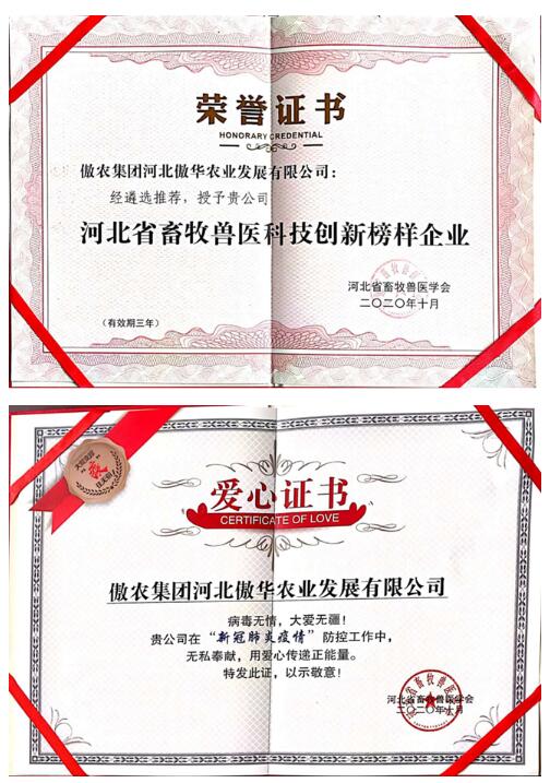 日前,河北傲華農(nóng)業(yè)發(fā)展有限公司(以下簡(jiǎn)稱:河北傲華)受邀參加第七屆河北省畜牧獸醫(yī)科技發(fā)展大會(huì),并在會(huì)上獲科技創(chuàng)新“榜樣企業(yè)”和疫往無前“愛心企業(yè)”雙項(xiàng)榮譽(yù)稱號(hào)。河北傲華市場(chǎng)主管王建輝代表領(lǐng)獎(jiǎng)。