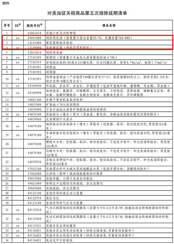 國務院關稅稅則委員會關于對美加征關稅商品第五次排除延期清單的公告