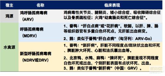 具體分析禽呼腸孤病毒病發(fā)現(xiàn),宿主不同,引起臨床表現(xiàn)也大不相同。黃淑堅在會上詳細比較了禽呼腸孤病毒在雞源和?禽源兩大宿主上呈現(xiàn)的癥狀,見下圖。