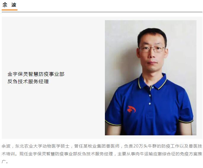 余波:這是牛場普遍存在的問題。首先,應激情況下可不可以進行免疫?大家都認為免疫也是一種應激,應激加應激是不是對牛群有一些危害?我們推薦的免疫程序里,最好是在牛運輸之前進行免疫,很多養殖戶不具備這個條件,那么可以到場后進行緊急免疫處理。牛到場后處于應激狀態,但是,拿支原體疫苗來說,它不是注射免疫,而是活疫苗噴鼻,免疫應答很快,且對牛的應激很小。拿口蹄疫來說,如果你不了解買牛之前的免疫歷史,可能沒打過疫苗,這個牛就屬于口蹄疫感染的高危牛,風險很大,如果不進行緊急免疫,其抗體水平升不上來,后續發生牛感染的癥狀是非常嚴重的。如果提前或者到場之后進行緊急免疫處理,抗體水平可以快速提升。很多農戶反應,打完疫苗,有些潛伏的牛發病了怎么辦?打完疫苗發病牛的癥狀是比較輕微的。