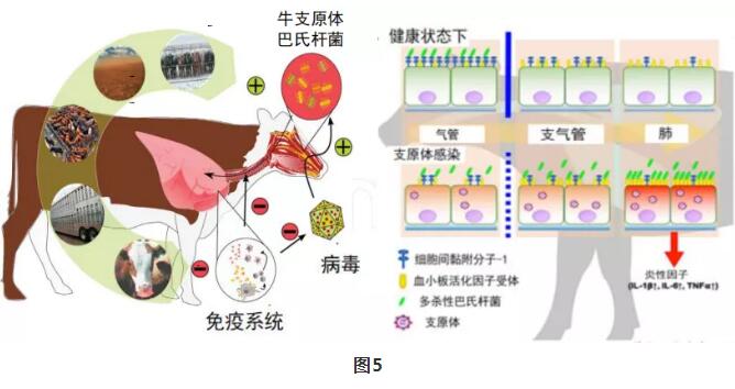 為什么牛群應激跟TSS如此密切相關?牛的免疫系統受到病毒、支原體等侵襲后,它的免疫系統產生了免疫抑制,想重點提醒大家,如果這些牛不經過運輸或應激,即便環境中有這些病毒、病原菌,它也不會輕易發病感染,因為它的免疫系統沒有產生抑制,引起免疫抑制最主要的原因就是支原體、病毒性腹瀉粘膜病、傳染性鼻氣管炎、副流感等病毒。這些病毒吸附在呼吸道氣管粘膜上,引起細胞間粘附因子減少,細胞致密性下降,這樣后期炎癥反應加重。