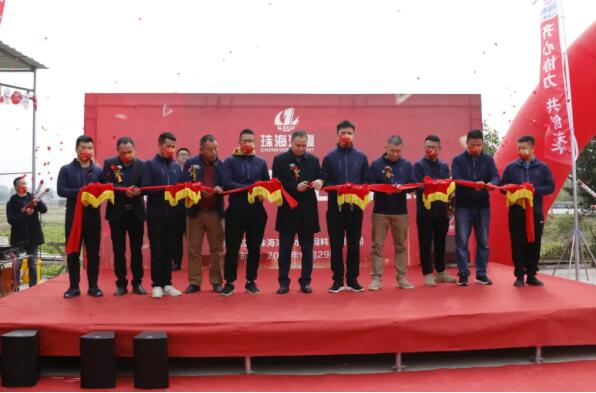 29日當天,通威股份華南一區總經理鄧金雁,珠海海壹總經理潘燦優,珠海海壹產業服務中心總經理羅永全,華南一區水產服務總監唐高強,華南一區特種水產負責人周爭志,珠海海壹基地內務總經理何良柯,通威金融袁建偉及當地養殖戶代表等出席并剪彩。