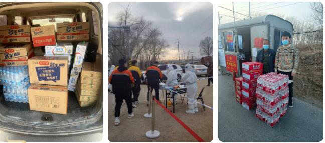 面對疫情威脅,揚翔股份北方區總裁孫文平迅速集結員工形成防疫小隊,在3月23日——4月3日期間,為沈陽新民市各大鄉鎮、防疫主力單位、疫情防控點共36個地方送去了溫暖,包括現金、豬肉、泡面、水、防護服、牛奶、口罩等,有一份力量發一份光。