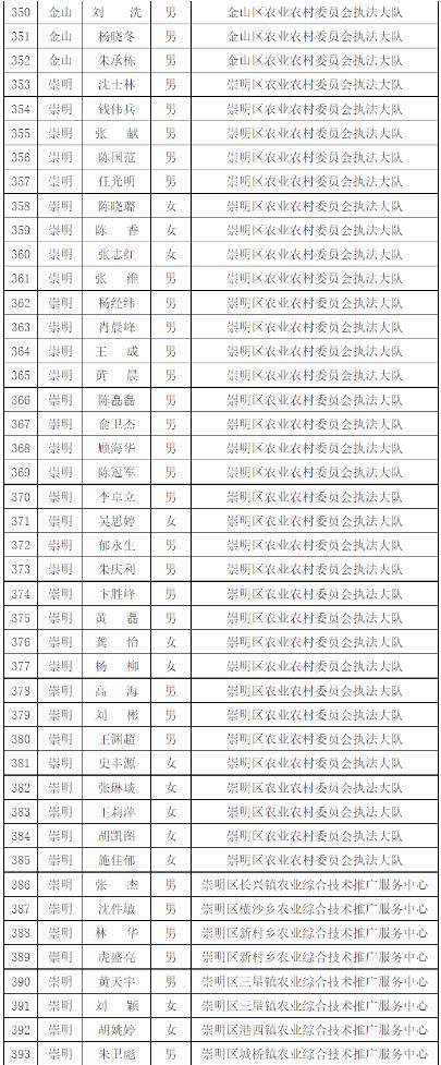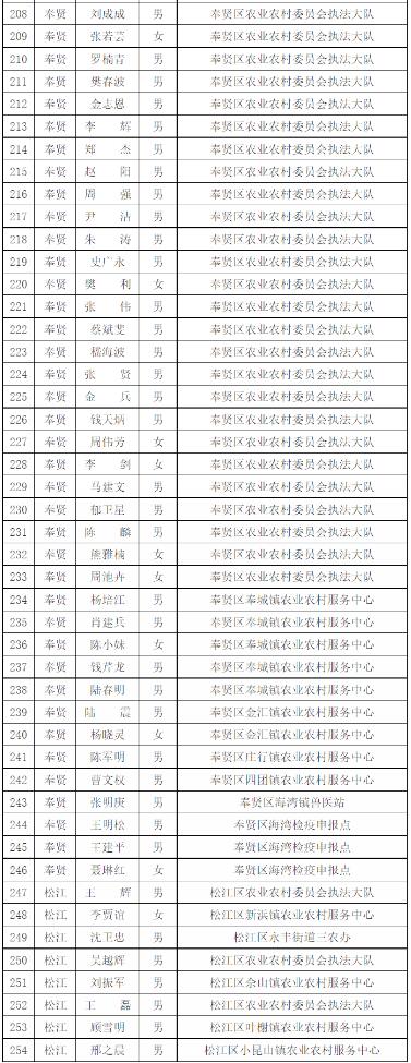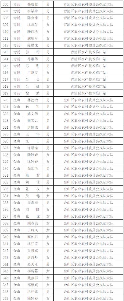 為進一步做好本市官方獸醫(含漁業官方獸醫)資格管理,加強隊伍建設,根據《中華人民共和國動物防疫法》《農業部關于做好動物衛生監督執法人員官方獸醫資格確認工作的通知》《農業部辦公廳關于官方獸醫資格確認條件的函》《農業農村部關于全面推進實施水產苗種產地檢疫制度的通知》和《農業農村部辦公廳關于開展動物檢疫監督能力提升行動的通知》的要求,我委組織開展了2022年度本市官方獸醫資格確認工作。經單位填報、區級復核、我委審查,擬確認以下565人具有官方獸醫資格,現公示如下:
