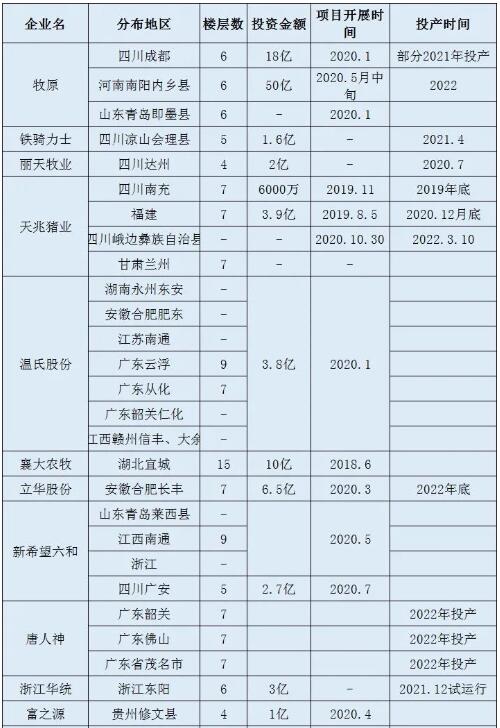 除此之外,樓房養(yǎng)豬項目投資超過5億的企業(yè)有金新農(nóng)、京基、立華、襄大;投資過億的企業(yè)有海南羅牛山、溫氏、浙江華統(tǒng)等。