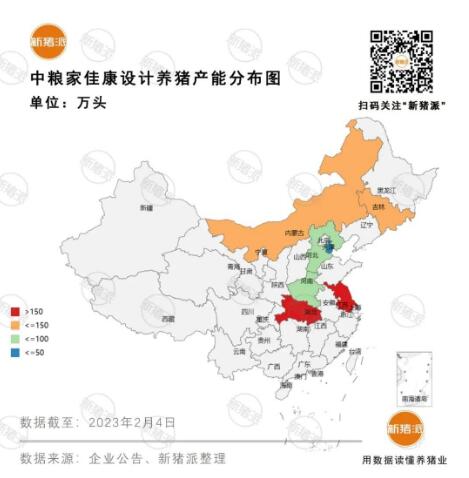 中糧家佳康是中糧集團負責養殖業務運營的子公司。2008年,其首個生豬健康生態養殖項目在湖北正式啟動,設計年出欄100萬頭,拉開了中糧集團養豬產業的開端。中糧家佳康目前在河南、湖北、江蘇、天津、吉林、內蒙古、湖北等省(區)規劃生豬養殖產能900多萬頭;同時擁有700萬頭生豬屠宰產能,集中在湖北、江蘇、吉林、內蒙古4個省份。