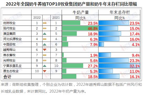 TOP10優然牧業第一 現代牧業第二 澳亞集團提升至第三
