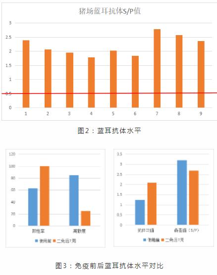 豬場在懷疑藍耳病感染時及時進行采樣送檢,根據抗原、抗體水平及測序結果,評估豬群的感染壓力及感染毒株,根據豬場感染的藍耳毒株,選擇毒株匹配度高或者具有交叉保護力的疫苗免疫。
