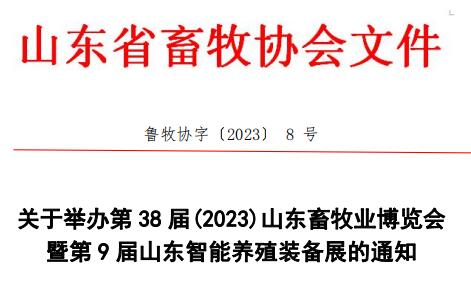 為進一步加快畜牧業現代化進程,促進畜牧業高質量發展,提高畜產品供給保障能力和動物衛生安全水平,提升畜牧業質量效益和競爭力,著力補短板、強弱項、促融合、壯主題、增動能,實現新階段我國畜牧業發展新目標、新任務。為全面展示畜牧業發展的新成就,交流新技術,分享新經驗,促進新合作,展示鄉村振興新成果,山東省畜牧獸醫局、山東省畜牧協會擬于2023年10月19-20日在山東國際會展中心舉辦第38屆(2023)山東畜牧業博覽會暨第9屆山東智能養殖裝備展(簡稱“博覽會”)。
