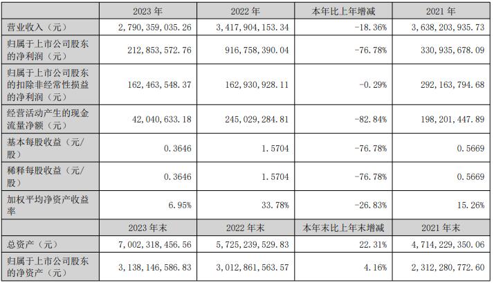 2023年,公司深度踐行“1213”戰略目標,聚焦食品產業1個方向、深耕“食品冷鏈、畜禽農牧”2大業務板塊,緊扣“提質增效”1條主線,力爭“產業規模、經營質量、科技創新”3大突破,業務發展穩中有進。2023年公司實現營業收入27.90億元,剔除教育書店及解決同業競爭帶來的重組收益等因素后,同比增長9.28%,實現歸母凈利潤2.13億元,剔除教育書店及重組收益等影響,同比增長14.01%。截止2023年12月31日,公司總資產為70.02億元,比2022年末增長22.31%,歸屬于上市公司股東的凈資產為31.38億元,比2022年末增長4.16%。