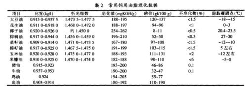 油脂是動物必需脂肪酸的來源,油脂最重要的組成成分是脂肪酸,不同的油脂其脂肪酸的組成也不同。表1為不同來源油脂的脂肪酸組成。植物性油脂的飼用價值優于動物性油脂,主要是植物性油脂含有豐富的不飽和脂肪酸,其中部分是必需脂肪酸,而且代謝值變異較小。而動物性油脂由于本身的組成及加工回收等因素使其飼用價值變異較大。動物油脂中單胃動物來源的油脂優于反芻動物來源的油脂,優質豬油的價值接近于植物性油脂。但棕櫚油含有高度飽和脂肪酸,代謝能值并不高,但質量較穩定;椰子油是唯一含有大量中鏈脂肪酸的天然油脂,容易被幼齡動物吸收,適于乳豬料和斷奶仔豬料。碳鏈越短的脂肪酸越容易吸收,不飽和脂肪酸比飽和脂肪酸容易吸收。