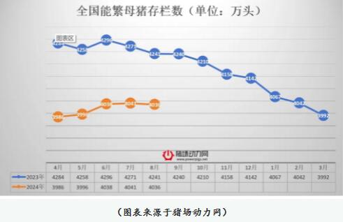 據(jù)農(nóng)業(yè)農(nóng)村部監(jiān)測,8月份全國能繁母豬存欄量為4036萬頭,環(huán)比下降0.1%、同比下降4.8%,相當于3900萬頭正常保有量的103.5%,處于產(chǎn)能調控綠色合理區(qū)域,全國中大豬存欄量環(huán)比增長1.8%。