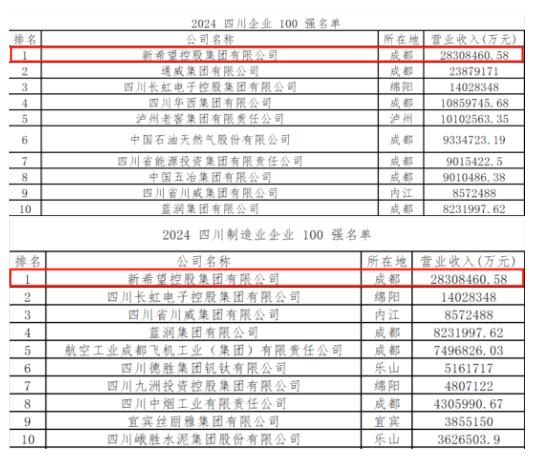 9月26日,由四川省企業(yè)聯(lián)合會(huì)、四川省企業(yè)家協(xié)會(huì)主辦的2024四川大企業(yè)大集團(tuán)發(fā)展大會(huì)在成都召開。本次會(huì)議以“向“新”而行 打造更多世界一流企業(yè)”為主題,發(fā)布2024年四川省綜合、制造業(yè)、服務(wù)業(yè)百強(qiáng)、數(shù)字經(jīng)濟(jì)100強(qiáng)企業(yè)榜單。新希望集團(tuán)位列2024四川企業(yè)100強(qiáng)和四川制造業(yè)企業(yè)100強(qiáng)“雙第一”。