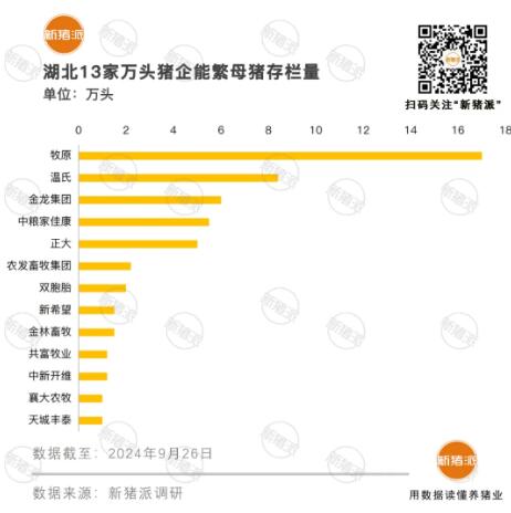 截止目前,湖北存欄能繁母豬在1萬頭以上的豬企有13家,手握母豬合計約54萬頭,占到全省的24%。