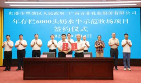 近日,廣西貴港市覃塘區(qū)與廣西百菲乳業(yè)股份有限公司舉行年存欄6000頭奶水牛示范牧場(chǎng)項(xiàng)目簽約儀式。區(qū)委副書(shū)記、區(qū)長(zhǎng)吳華勇,廣西百菲乳業(yè)股份有限公司董事長(zhǎng)吳守允、廣西奶業(yè)協(xié)會(huì)常務(wù)副會(huì)長(zhǎng)李仕堅(jiān)、陳學(xué)文出席簽約儀式。區(qū)人民政府副區(qū)長(zhǎng)甘國(guó)直代表區(qū)政府與廣西百菲乳業(yè)股份有限公司畜牧總監(jiān)黃強(qiáng)簽署投資協(xié)議。