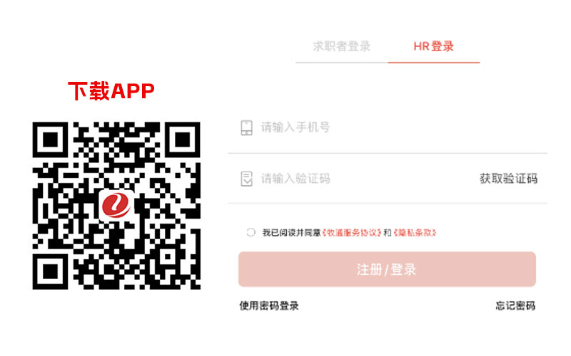 1、掃描二維碼下載或到手機(jī)應(yīng)用市場(chǎng)下載“牧通人才網(wǎng)APP”,打開選擇“HR登錄”,注冊(cè)/登錄時(shí)請(qǐng)?zhí)顚懻鎸?shí)有效的電話號(hào)碼,便于您日后登陸和接收求職者應(yīng)聘信息。